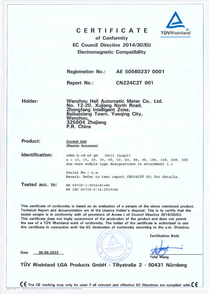 HEQ系列TUV-CE(EMC)證書(shū)