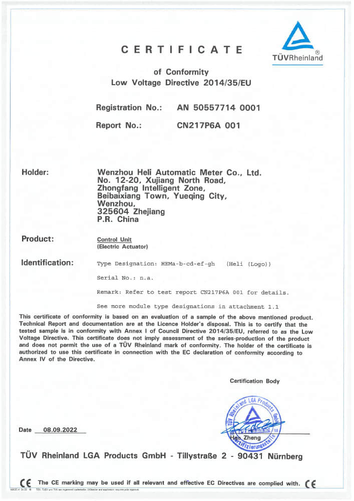 HEQ系列TUV-CE(LVD)證書(shū)